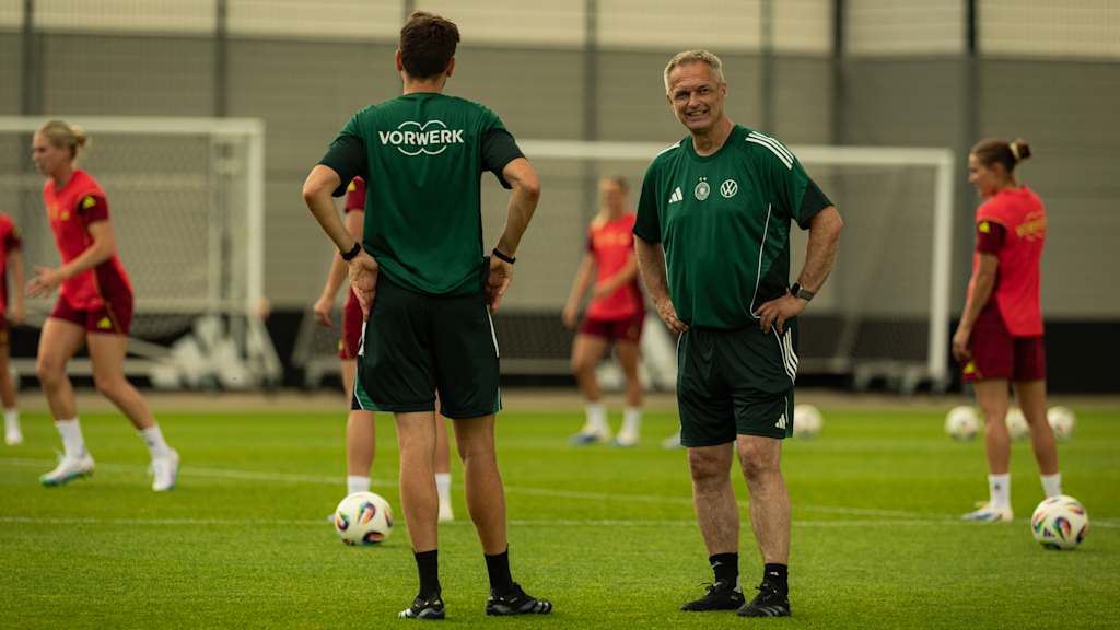 Die Vorbereitungen auf die UEFA Women's EURO 2025 in der Schweiz laufen auf Hochtouren: Die deutsche Frauen-Nationalmannschaft hat eine Woche vor dem EM-Auftaktspiel gegen Polen am Freitag, 4. Juli (ab 21 Uhr), ihr zweites Trainingslager im Homeground in Herzogenaurach begonnen. Auf DFB.de spricht Bundestrainer Christian Wück über den Stand der Vorbereitung, das Teamgefüge und wettkampspezifische Trainingsinhalte.