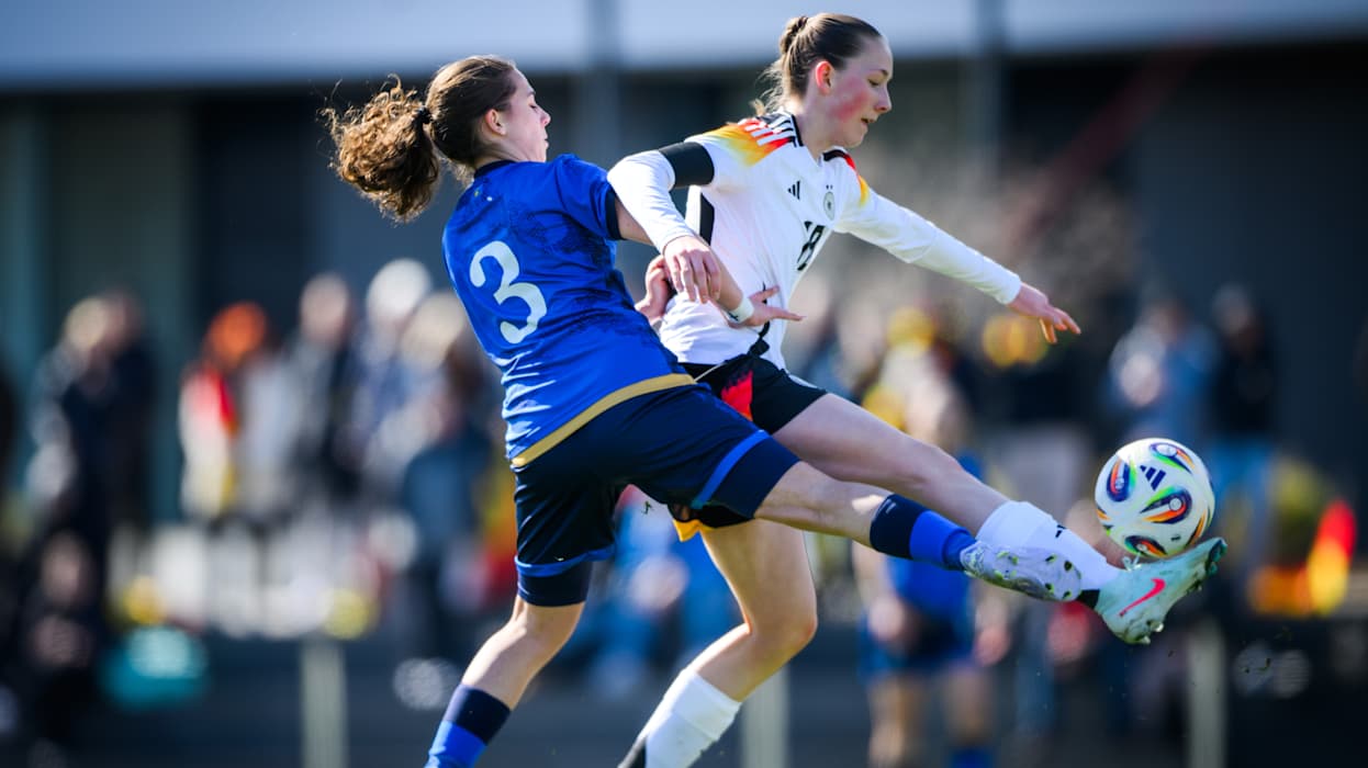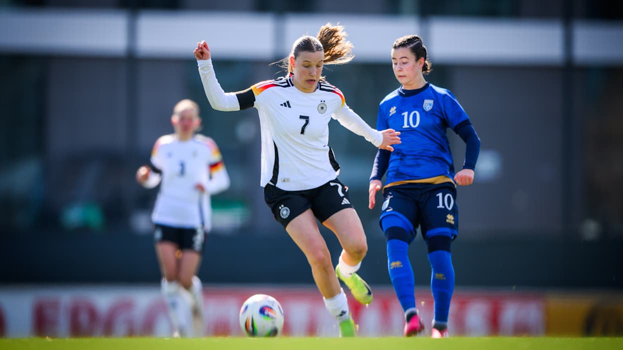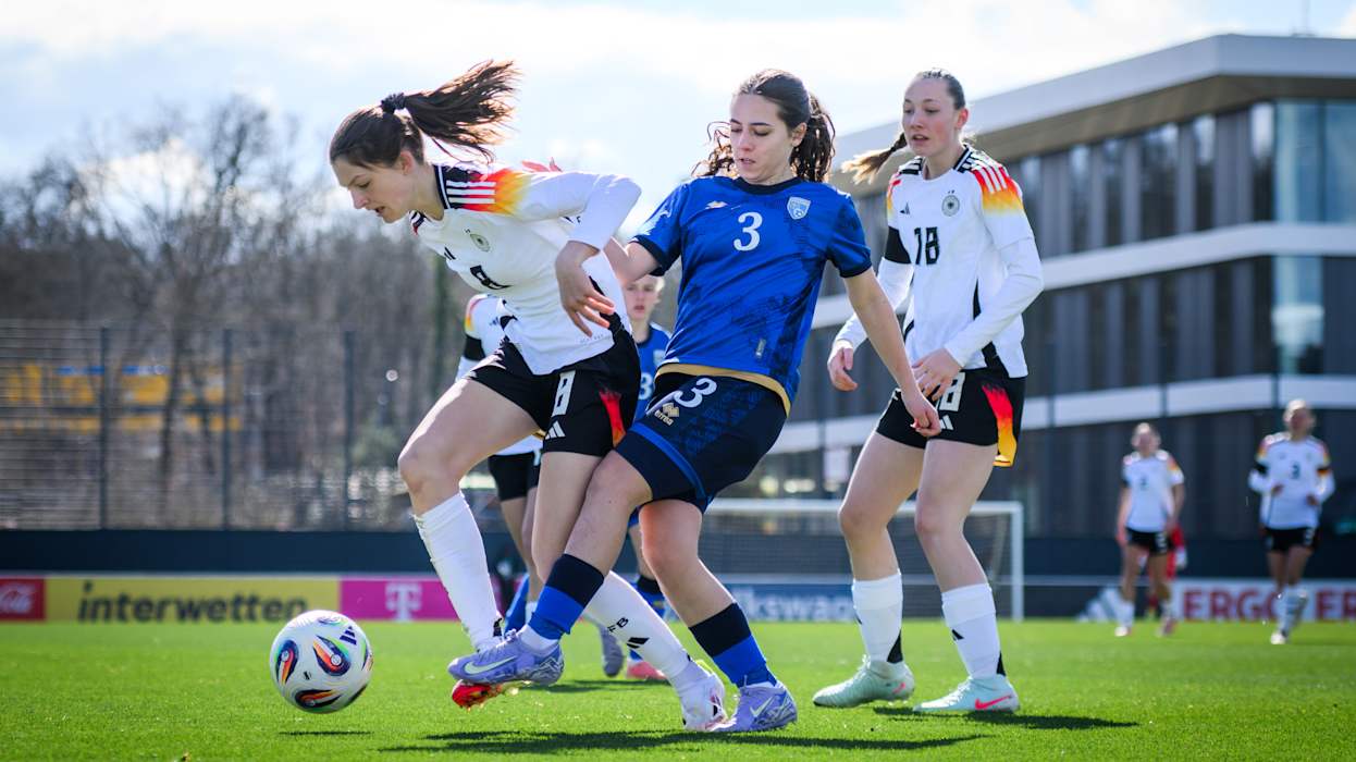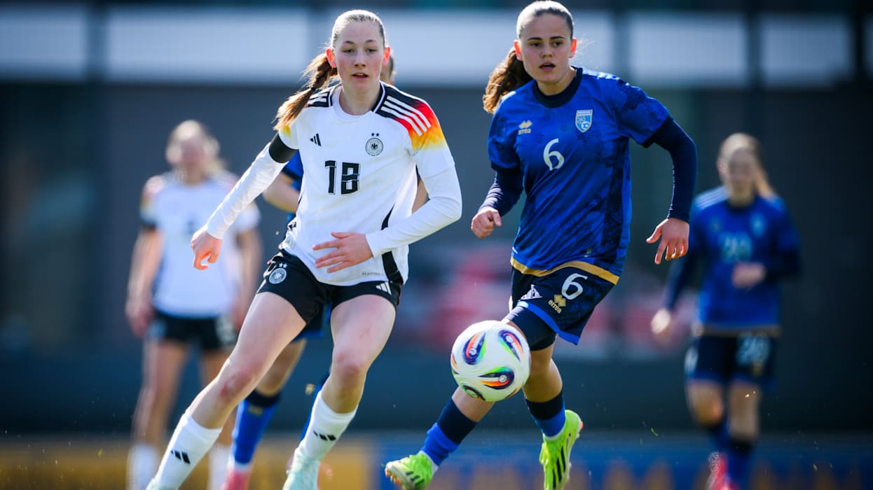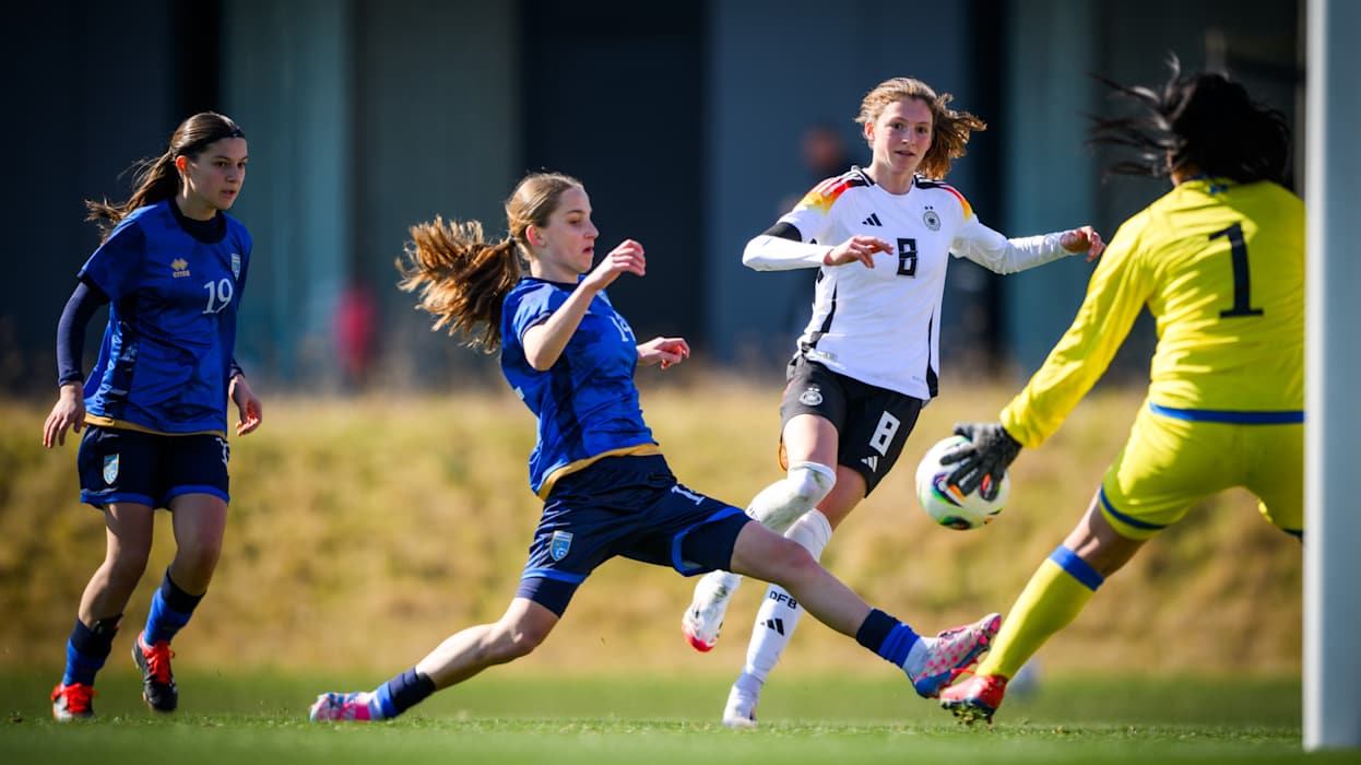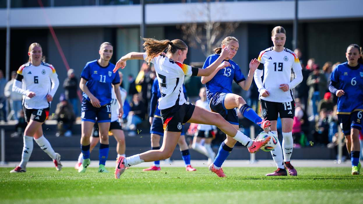 Die deutschen U 17-Juniorinnen haben einen Start nach Maß in die zweite Runde der EM-Qualifikation hingelegt. Die Auswahl von DFB-Trainerin Melanie Behringer setzte sich im ersten Spiel des Viererturniers auf dem DFB-Campus in Frankfurt am Main gegen Kosovo deutlich mit 10:0 (7:0) durch und ist somit der Teilnahme an der EM-Endrunde auf den Färöern (4. bis 17. Mai 2025) wieder ein gutes Stück nähergekommen.