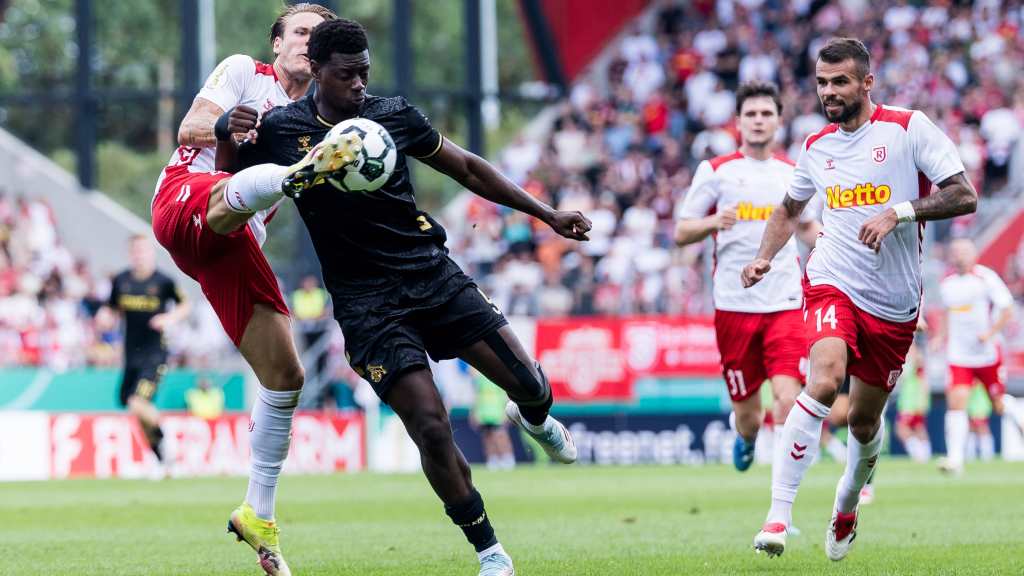 Bundesligist 1. FC Köln war im Jahnstadion gegen Drittligist SSV Jahn Regensburg im ersten Durchgang zwar das aktivere Team, echte Torchancen erarbeitete sich die Mannschaft von Trainer Lukas Kwasniok aber nicht. Und so ging der Drittligist aus Regensburg durch Benedikt Bauer (66.), der den Ball von der linken Strafraumkante gefühlvoll in die lange Ecke schlenzte, in Führung. Doch Martel sorgte mit einem satten Volleyschuss zunächst für den Ausgleich in der Nachspielzeit, ehe Zugang Johannesson sogar noch der Siegtreffer gelang.