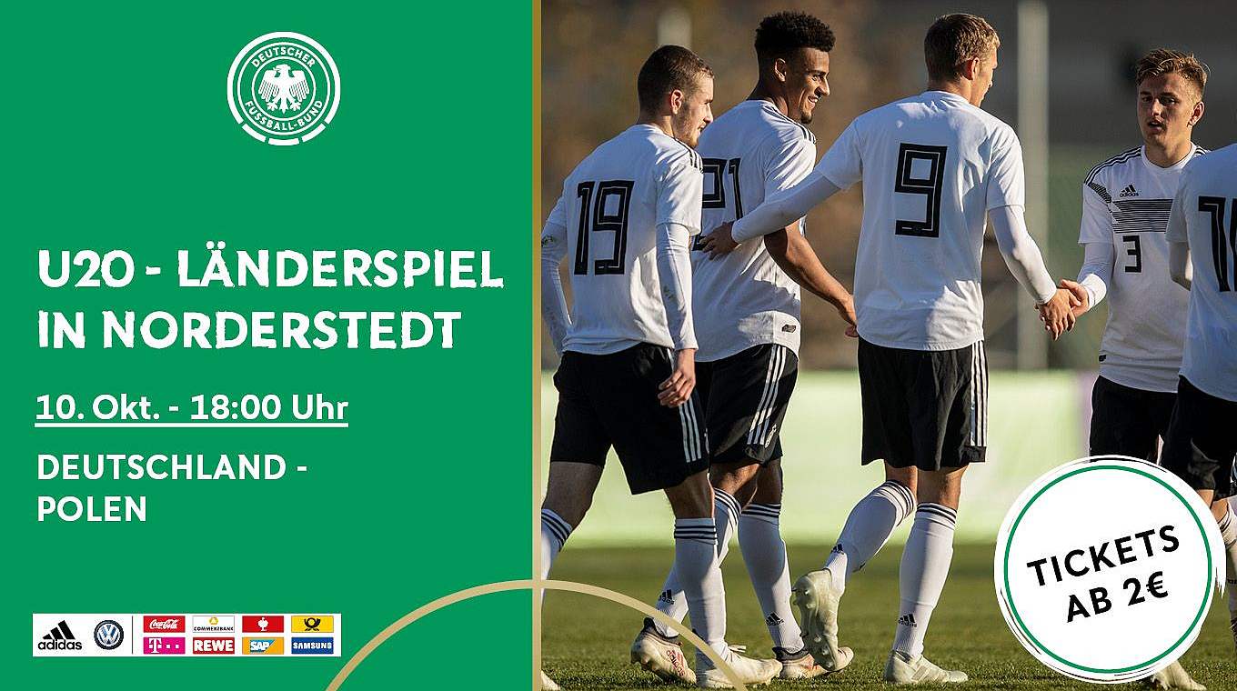 Die deutsche U 20-Nationalmannschaft trifft am 11. Oktober in Ahlen auf Polen. Das Länderspiel wird um 17.30 Uhr angepfiffen, der Einlass beginnt um 16.30 Uhr. Der Vorverkauf für das Nachbarschaftsduell läuft, Tickets gibt's hier.