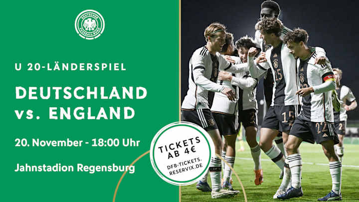 Klassiker zum Jahresabschluss: Die deutsche U 20 bestreitet das letzte Heimländerspiel des Jahres am heutigen Montag (ab 18 Uhr) in Regensburg gegen England. Tickets für die Partie im Jahnstadion sind hier erhältlich. Einfach reinklicken!